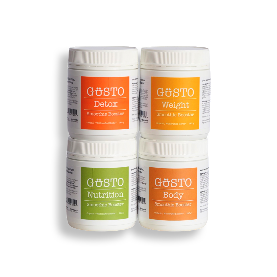 GUSTO Weight Smoothie Booster 180g is a wholefood, raw, vegan blend of herbs traditionally known for their weight management properties. This is neither a weight loss or weight gain product but rather these herbs are known to assist in bringing your body to its own natural, healthy weight.